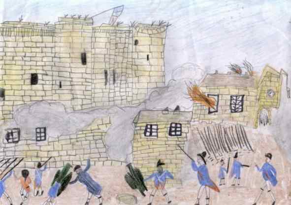 Suite à une dernière demande, ils attaquent et envahissent le pont-levis.